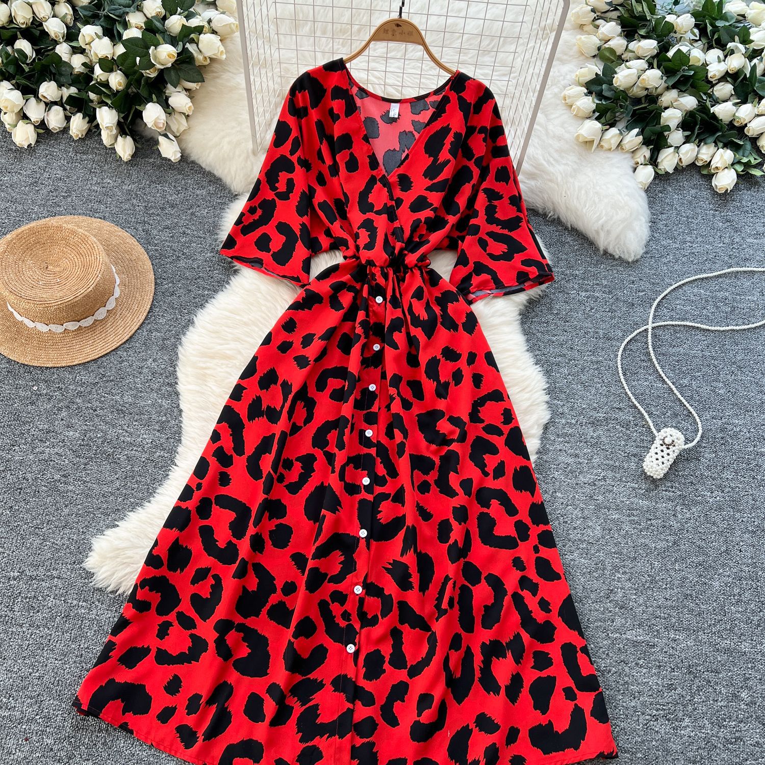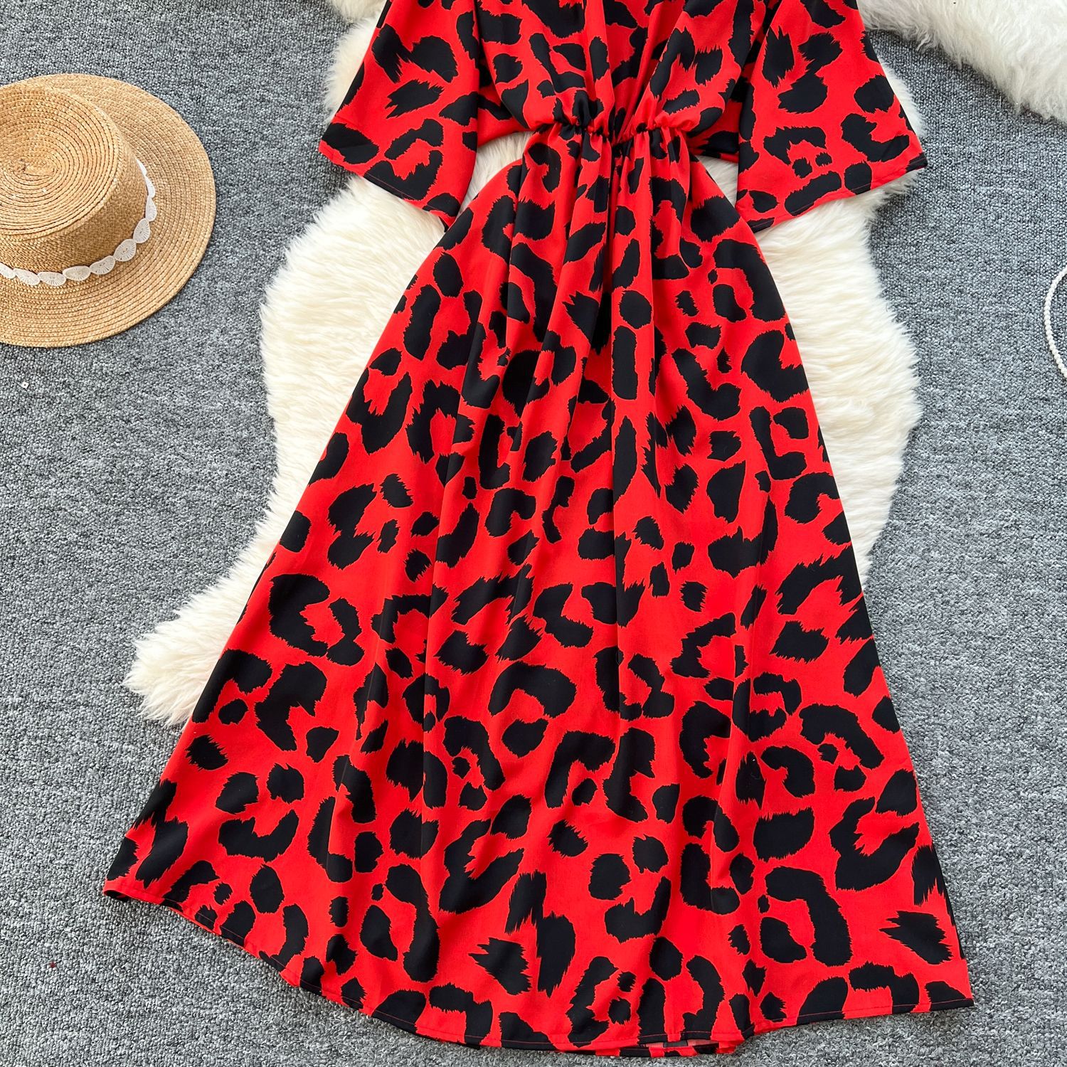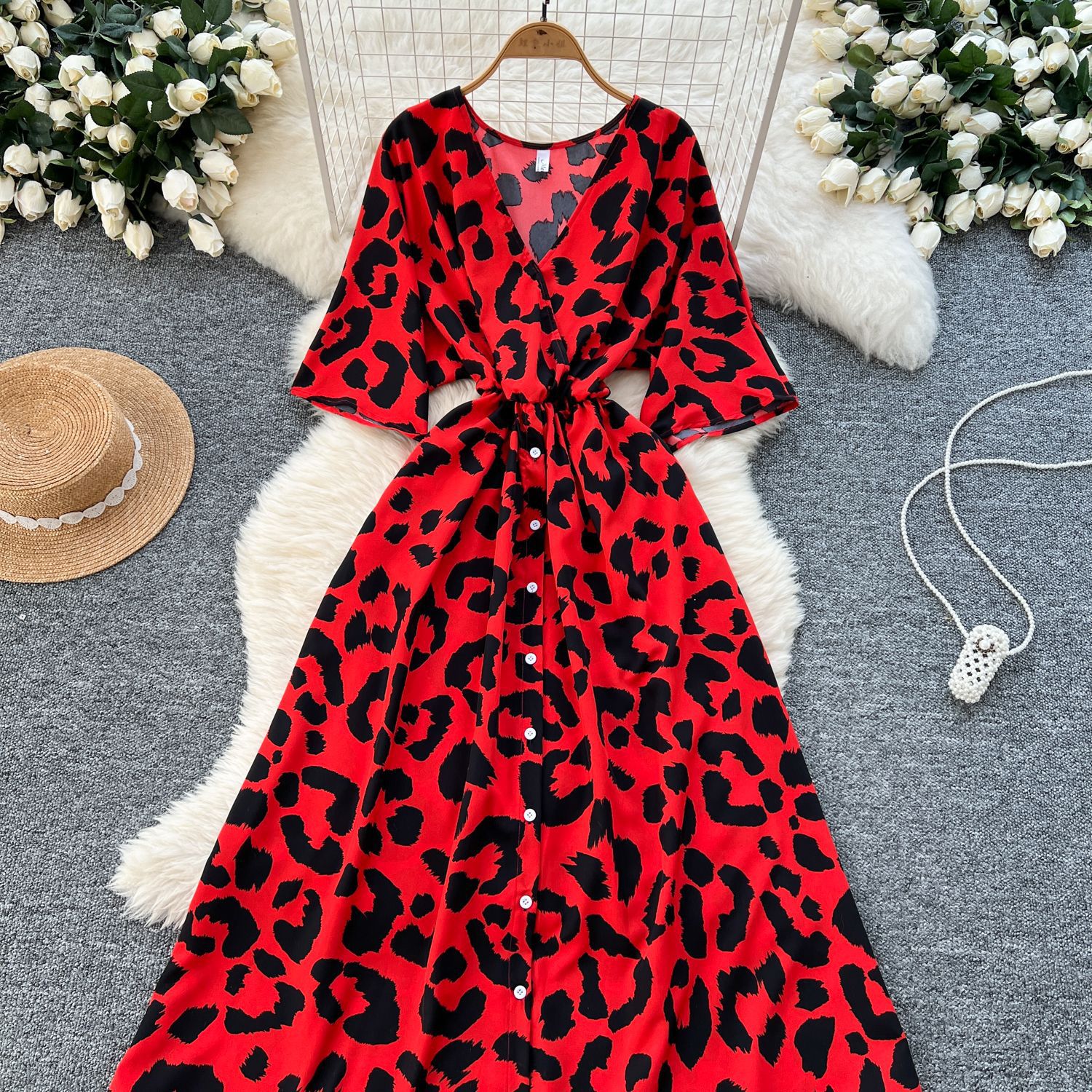 French Niche Summer Dress – V-Neck Printed Slim Fit Maxi