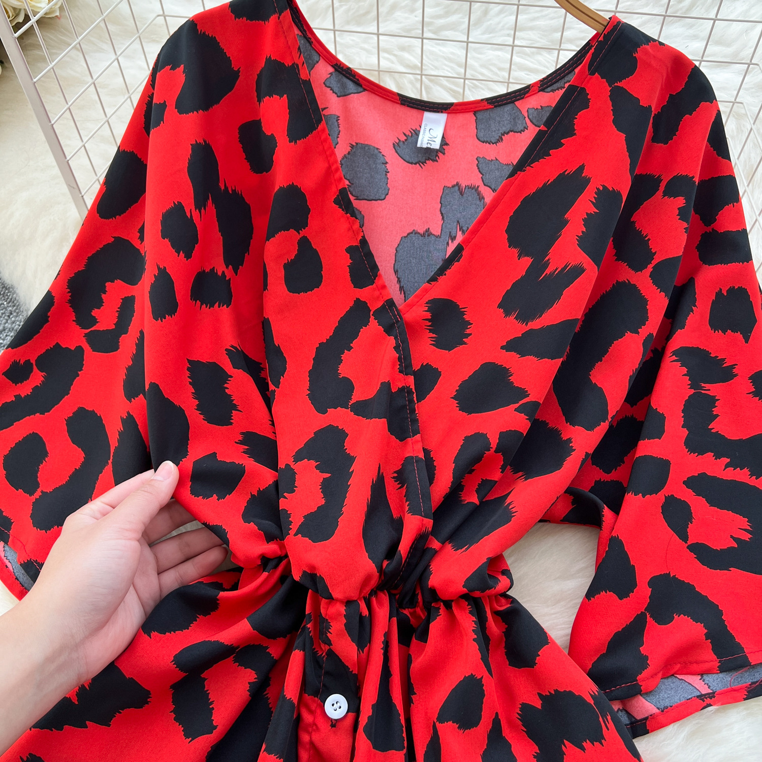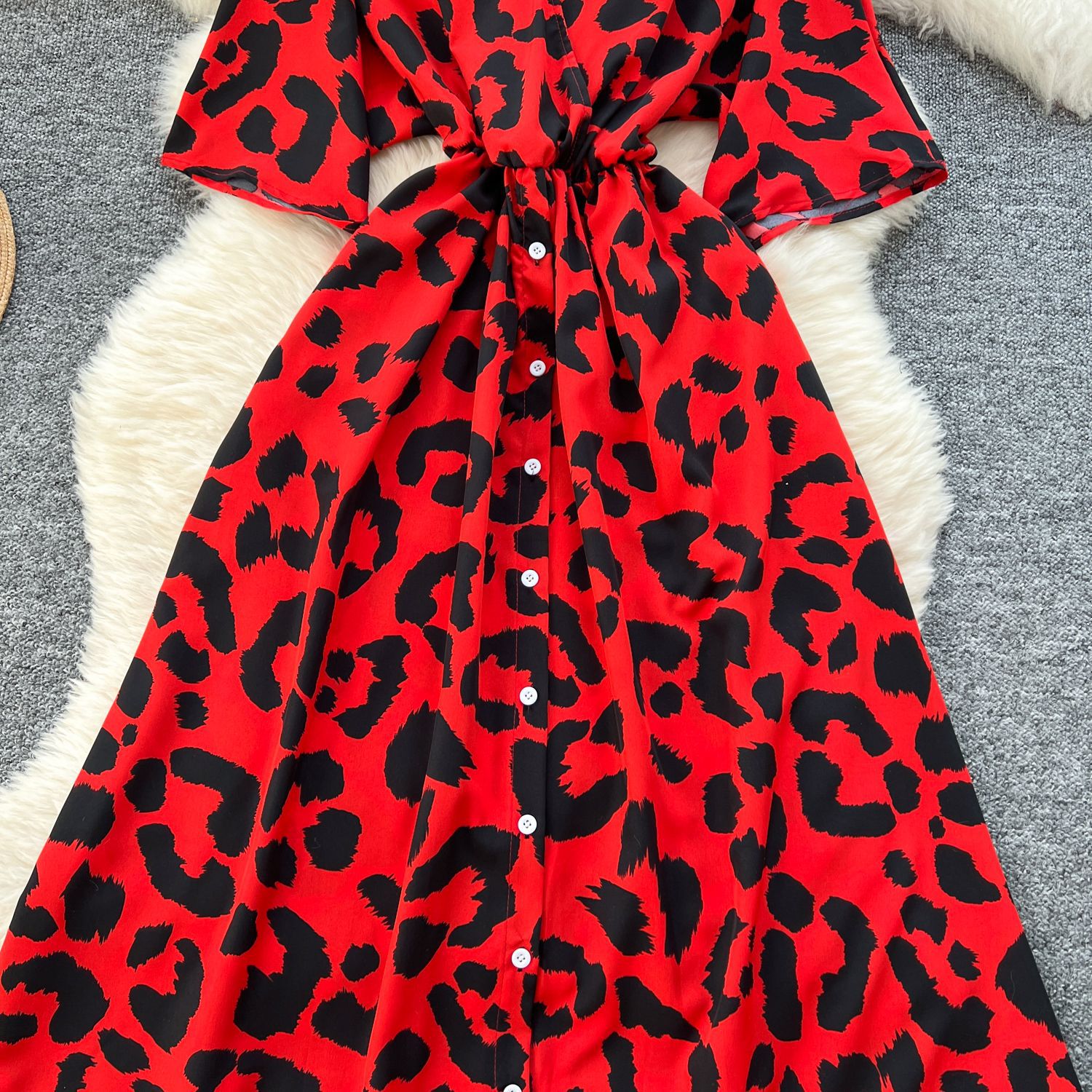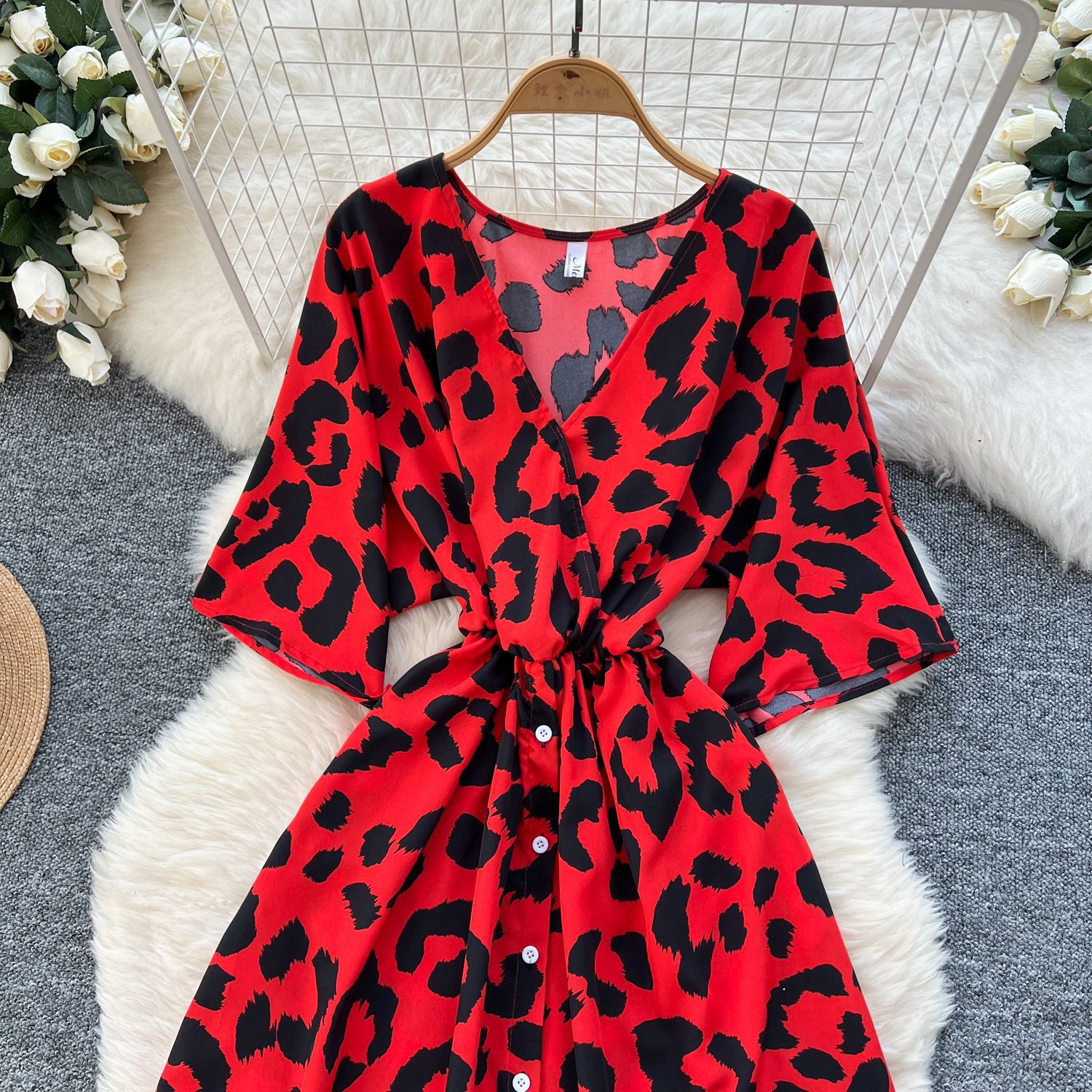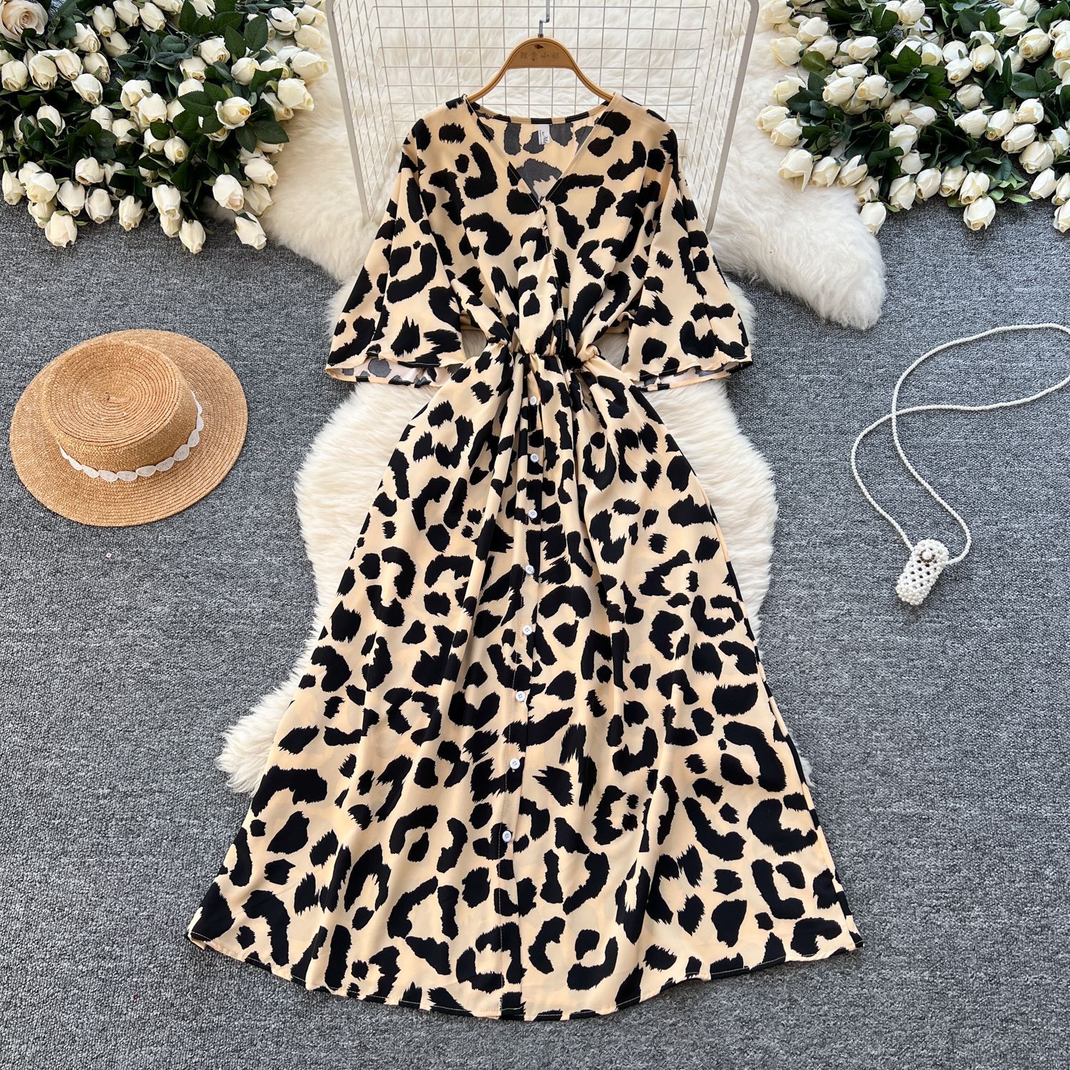 French Niche Summer Dress – V-Neck Printed Slim Fit Maxi