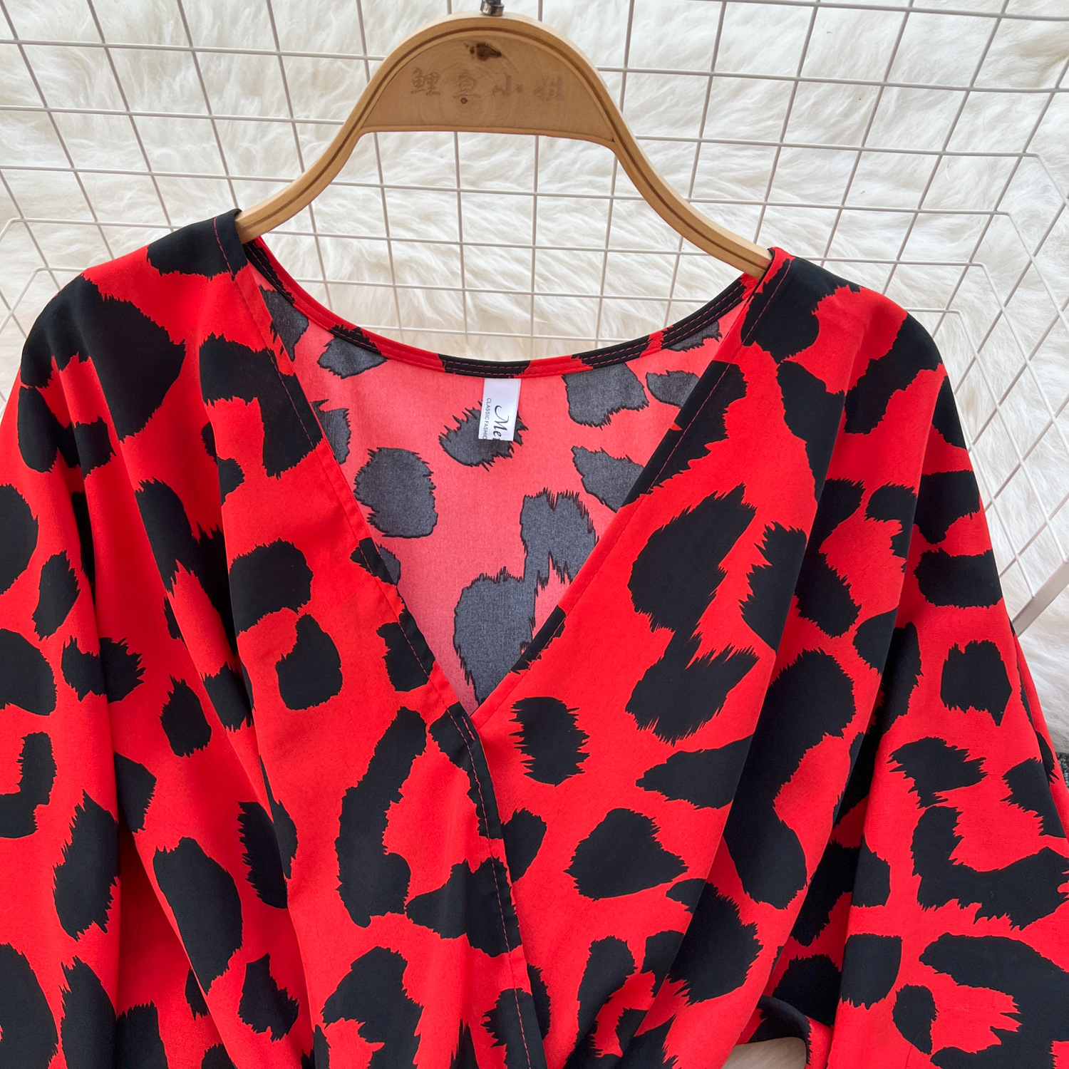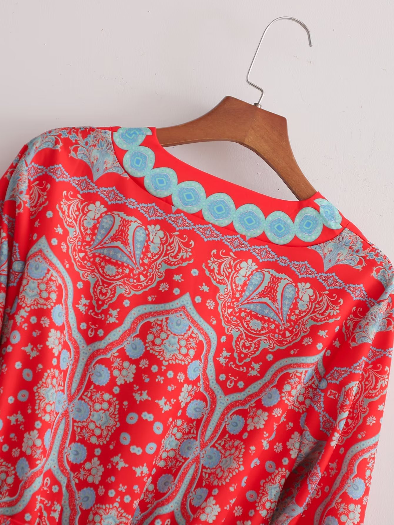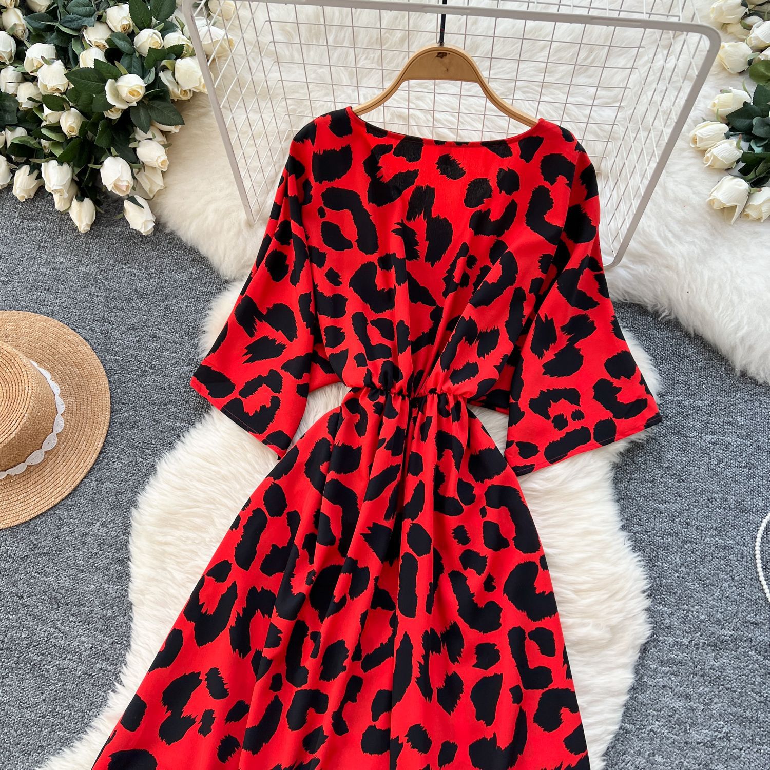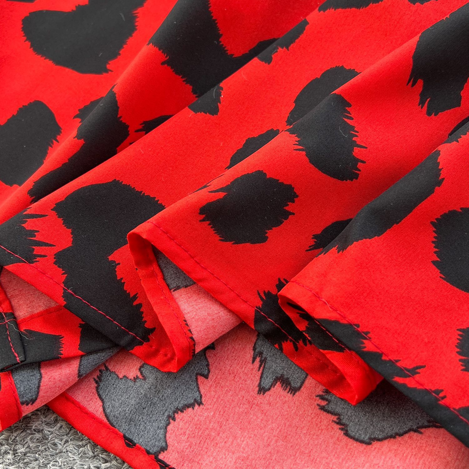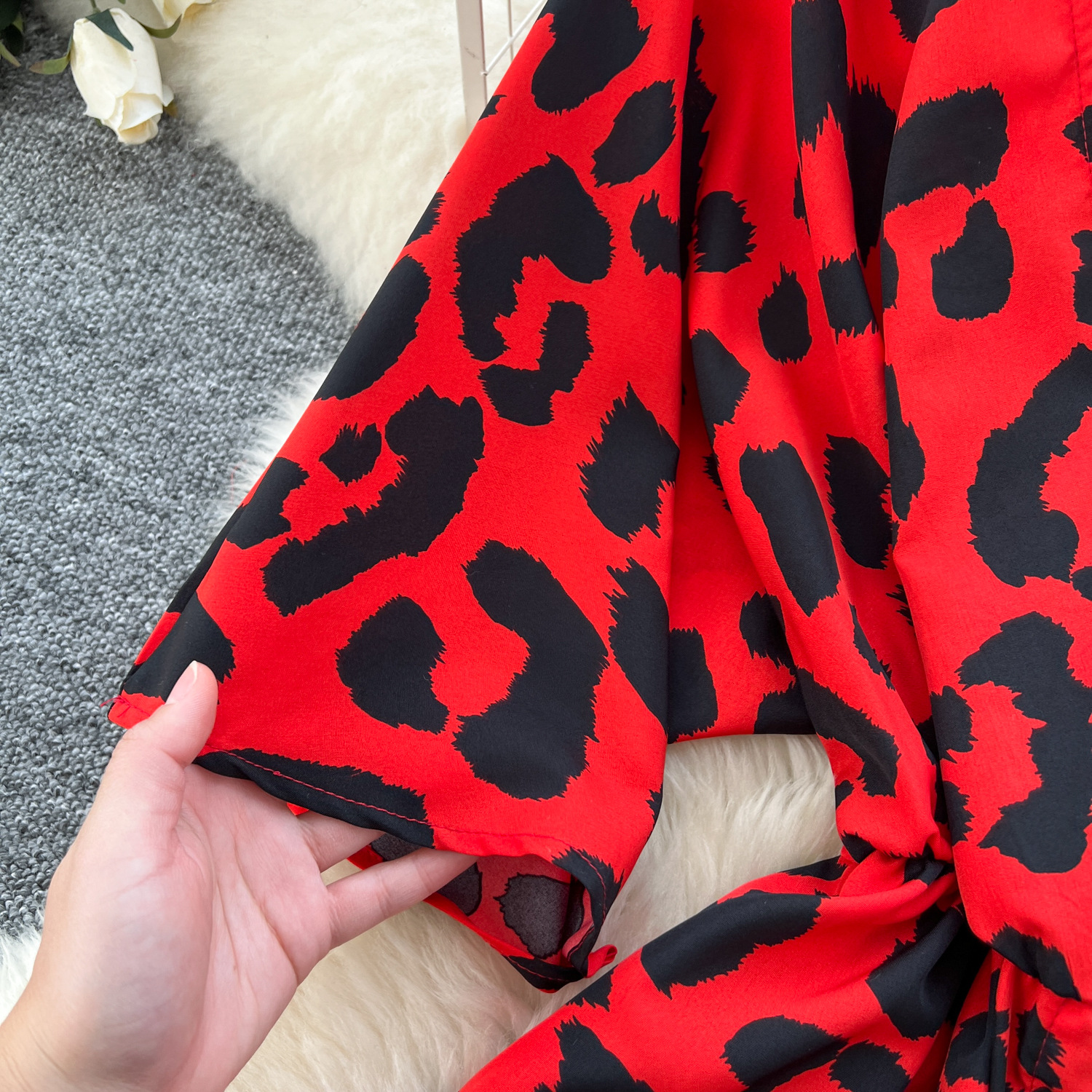 Women’s Long Sleeve Red Floral Dress – Elegant European Style