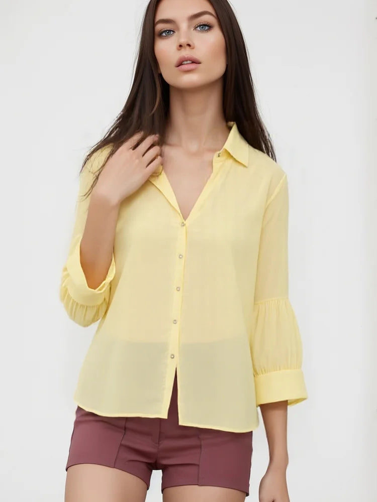 Soft 2025 Woman Fashion Fashion Hollow Hook Flower Thin Knitted Shirt Casual Slim Short Sleeve Blouses Yellow Autumn
