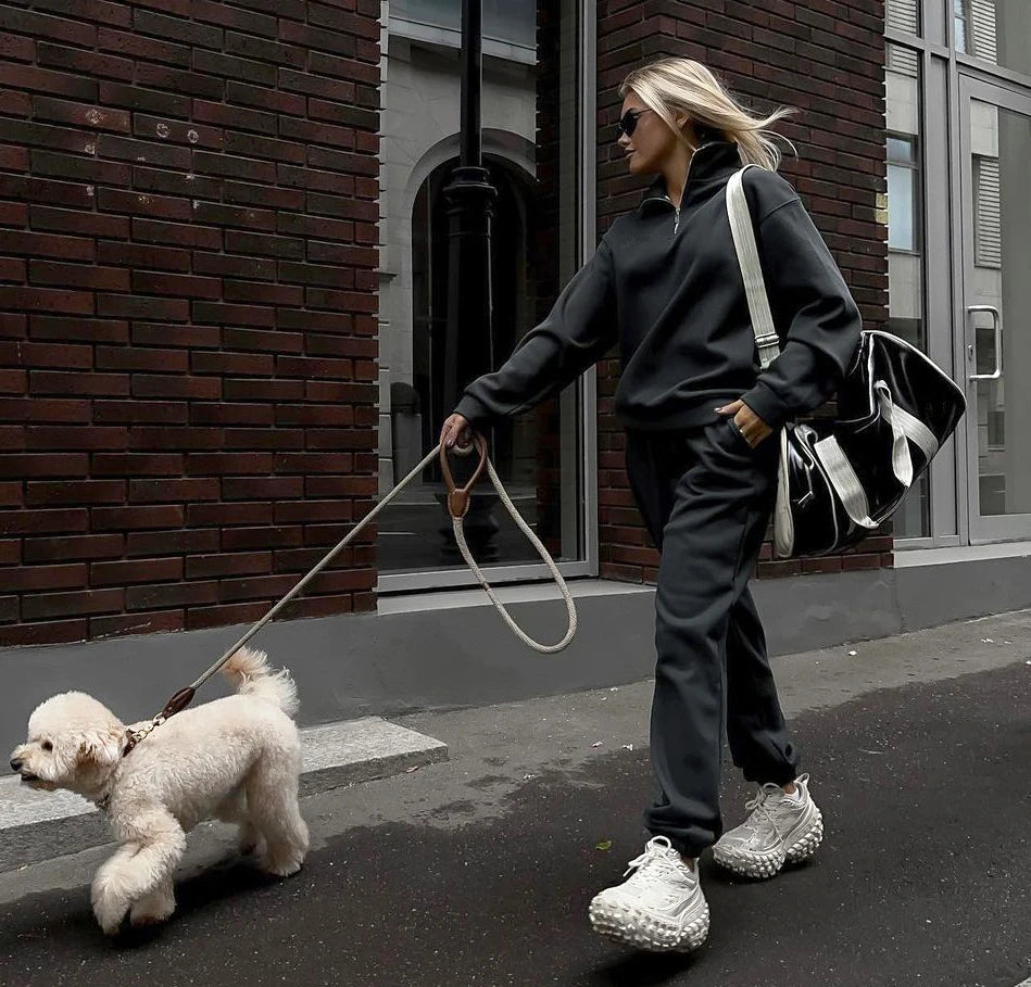 Autumn Women's Tracksuit with Zipper Cotton Oversize White Casual Two Piece Set Women Classic Sports Trouser Suits for Women