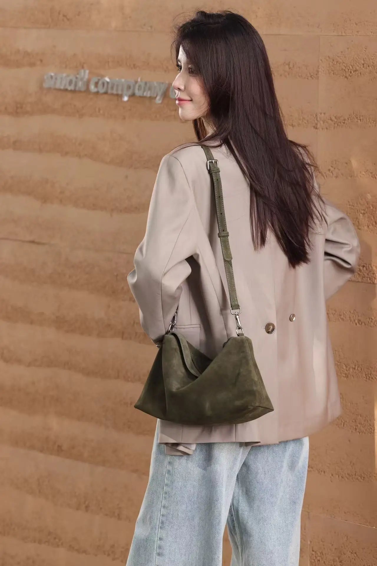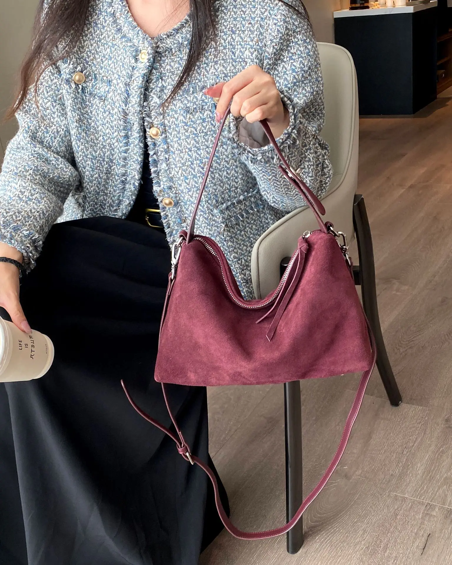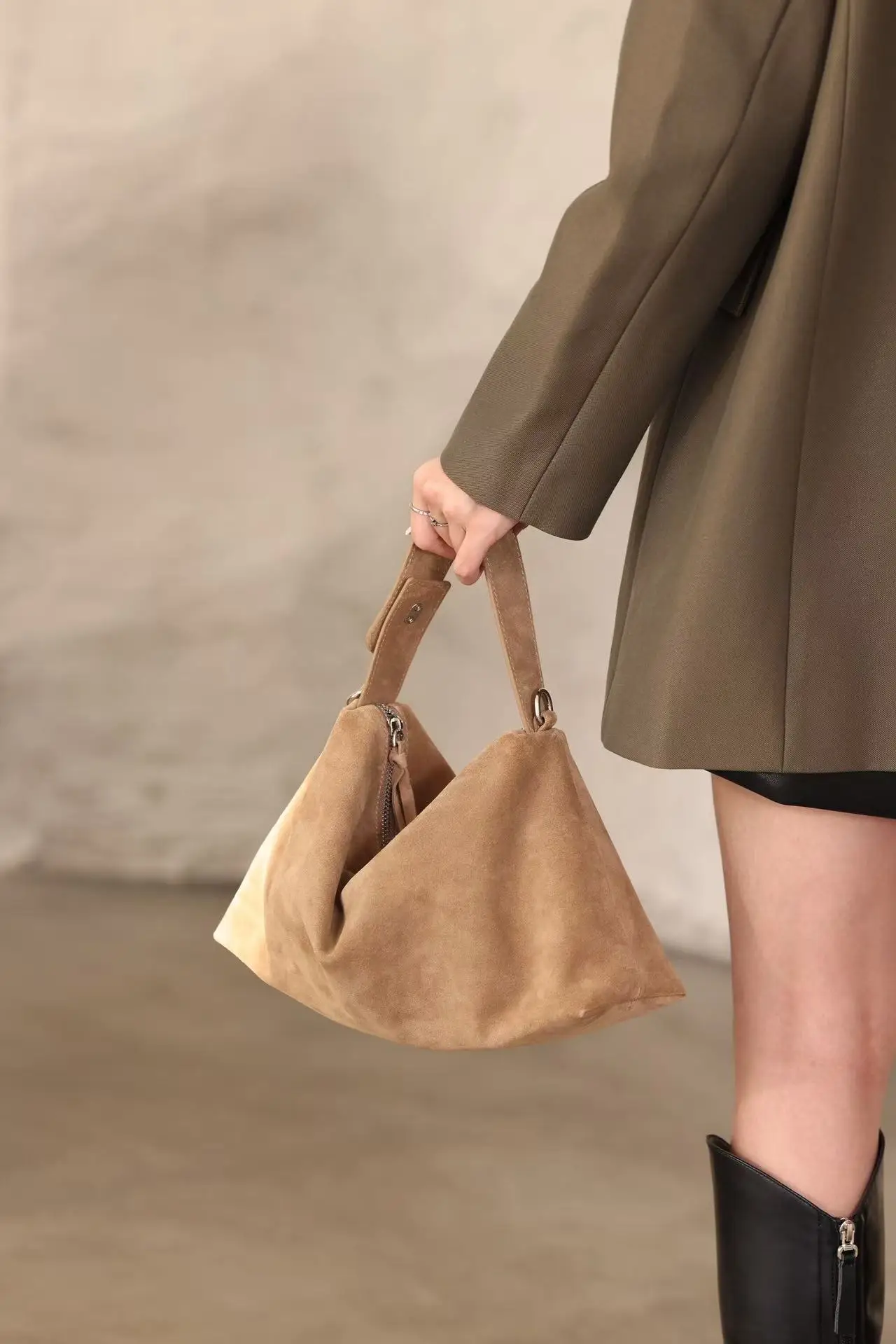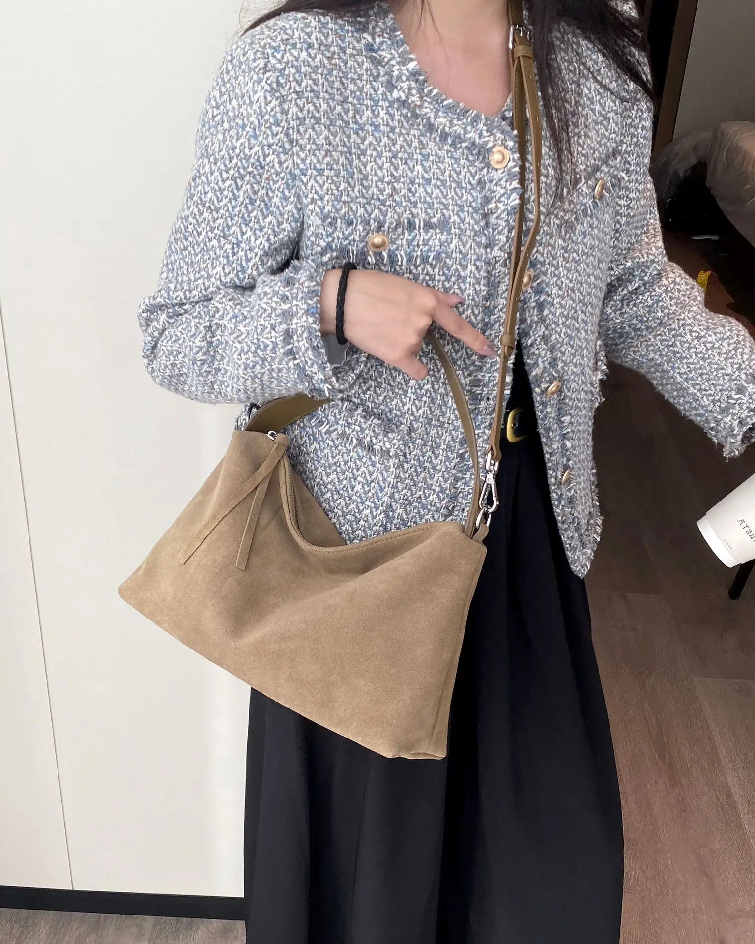Genuine Grade Autumn Winter Big Boston Luxury Designer Tote Soft Matte Suede Leather Women Handbag Female Shoulder Crossbody Bag
