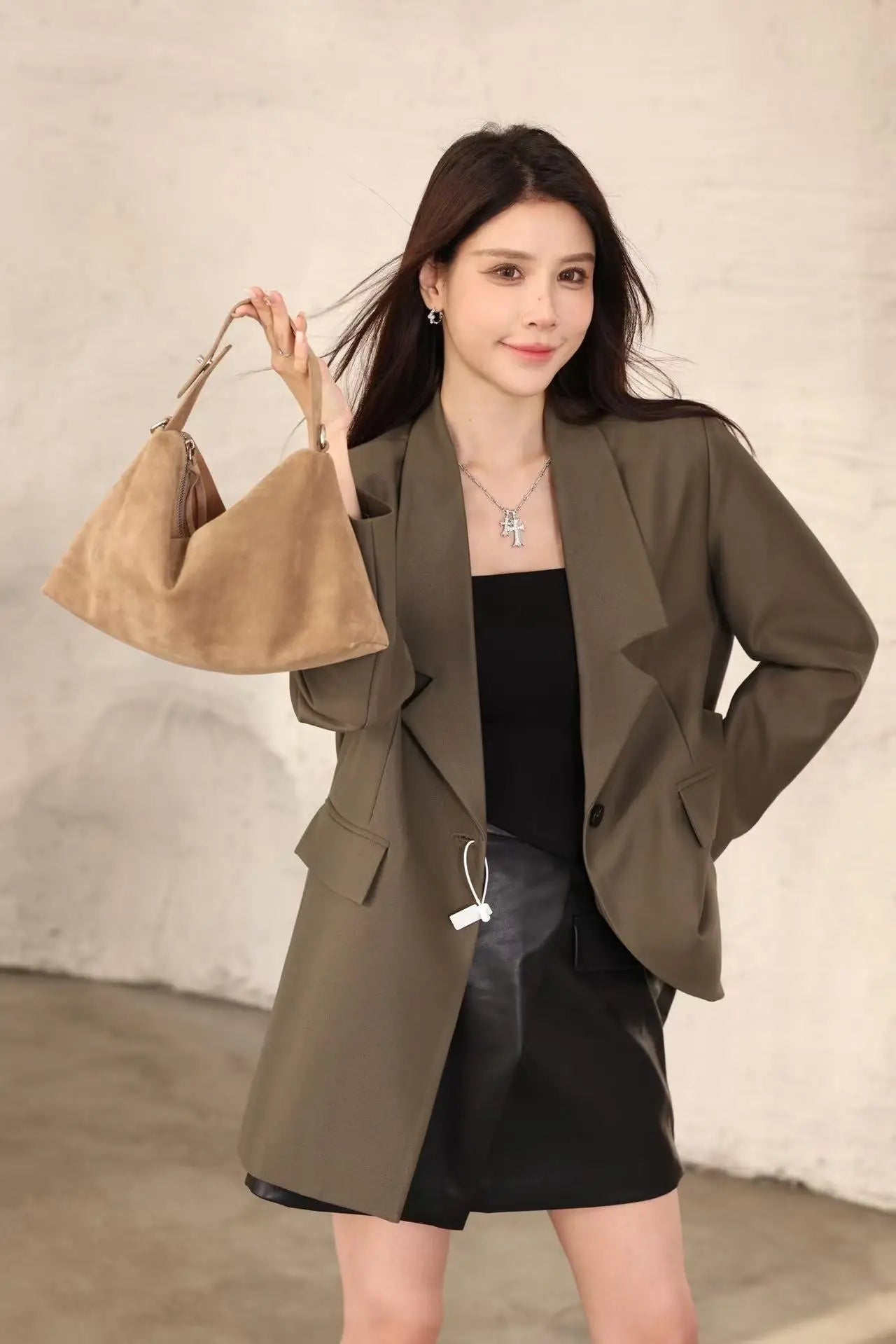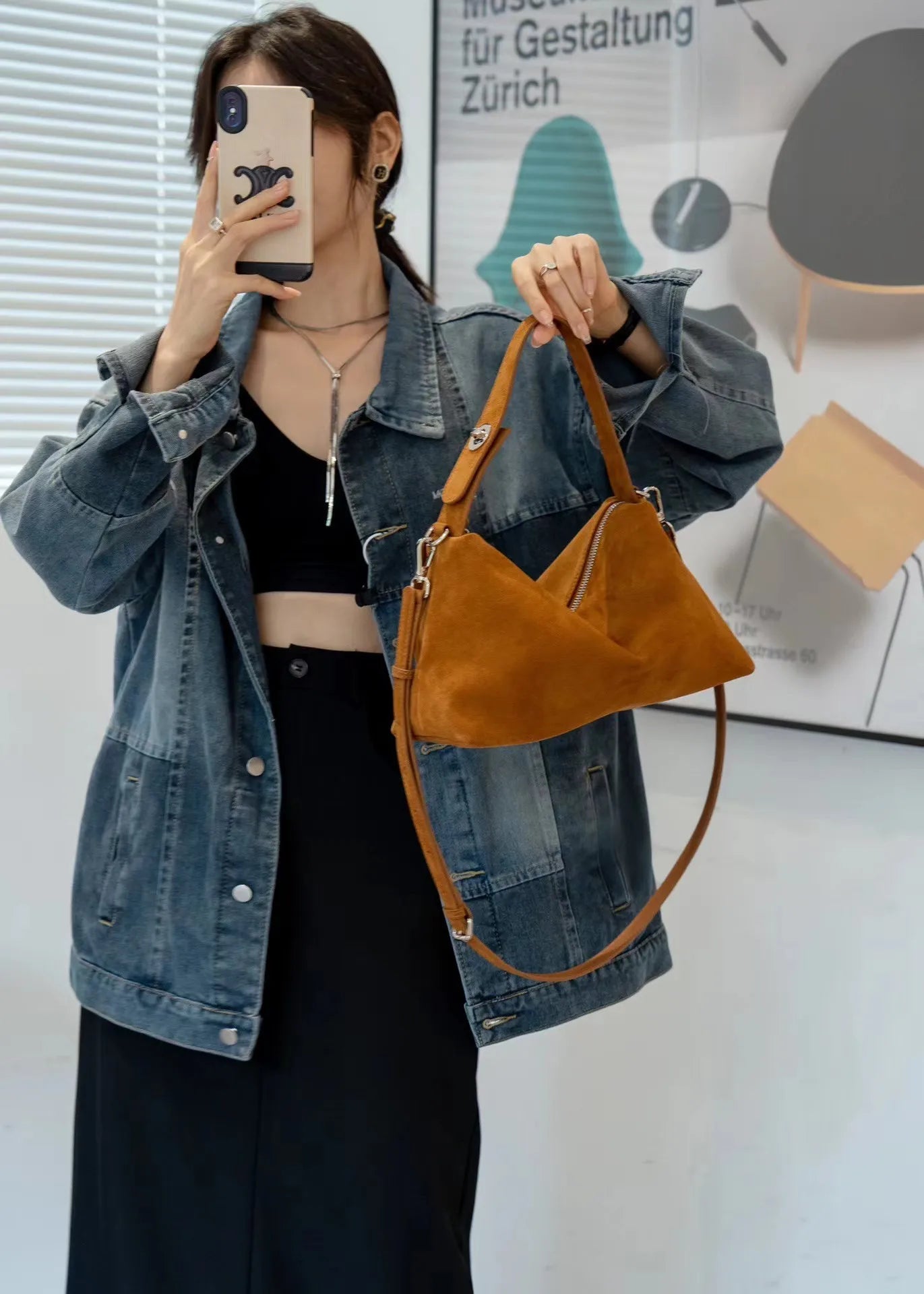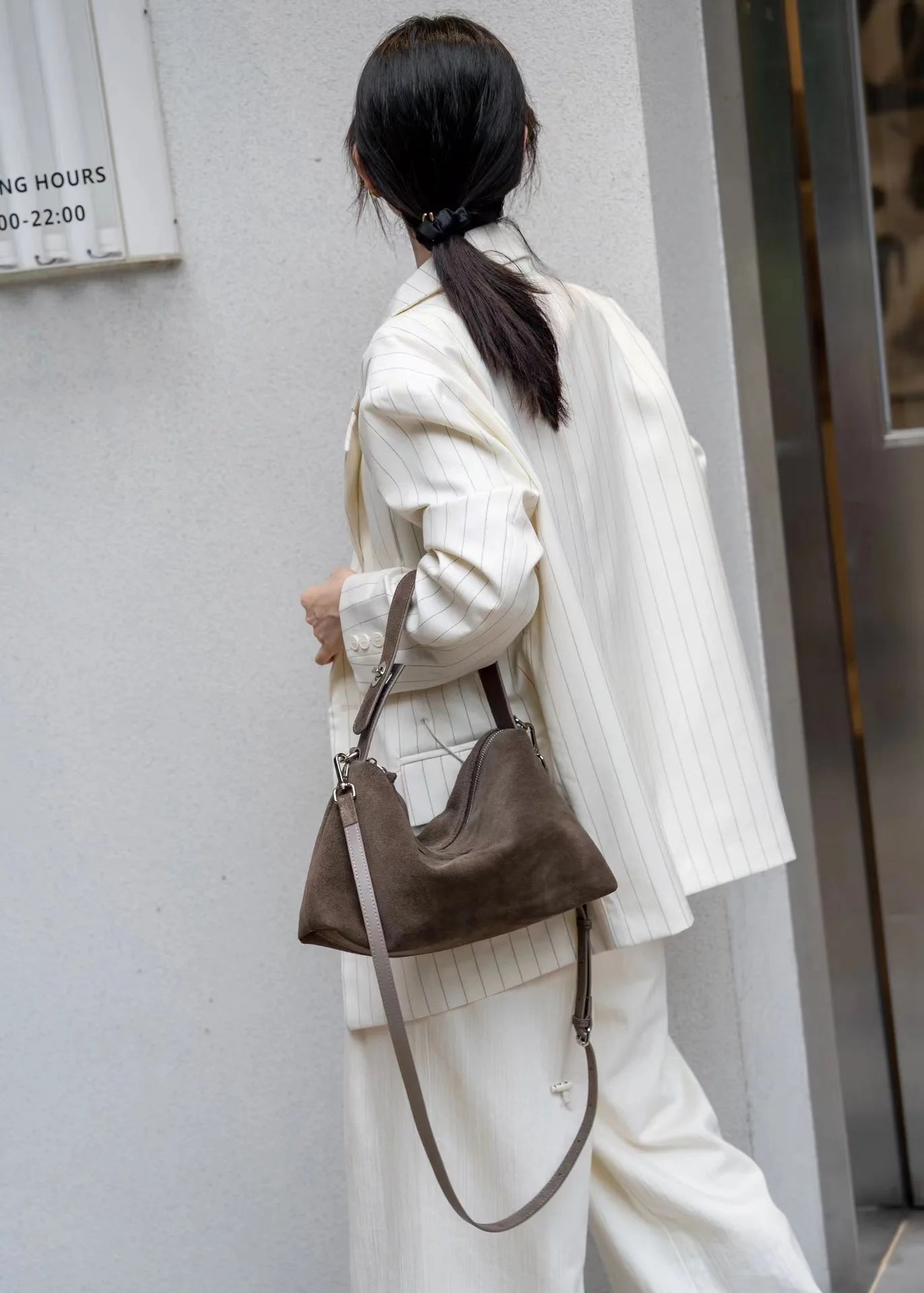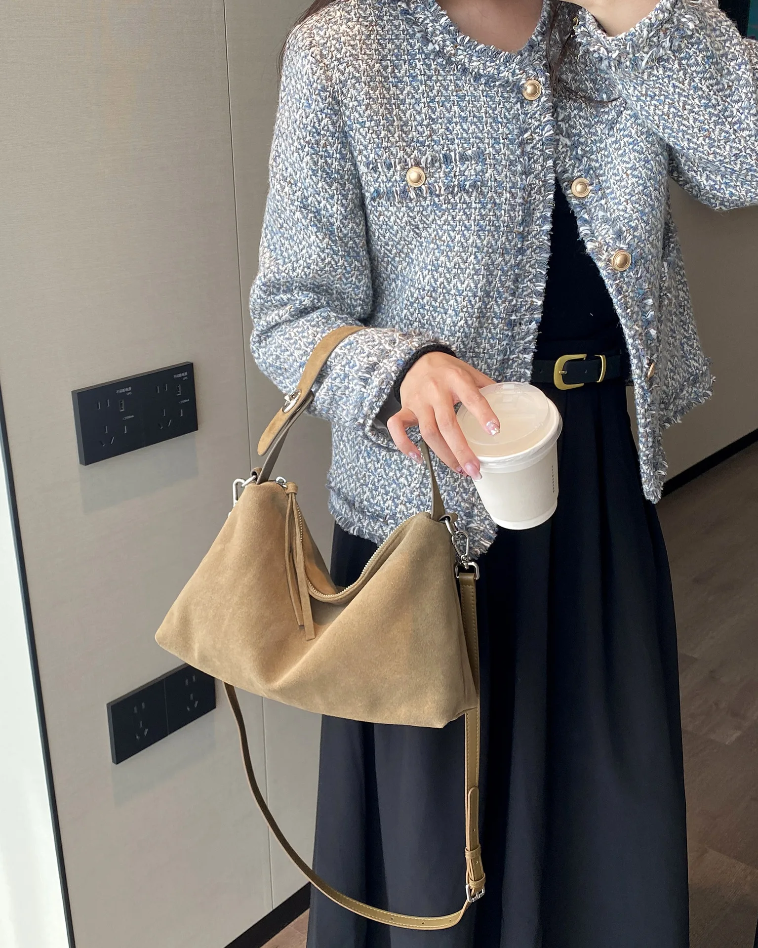 Genuine Grade Autumn Winter Big Boston Luxury Designer Tote Soft Matte Suede Leather Women Handbag Female Shoulder Crossbody Bag