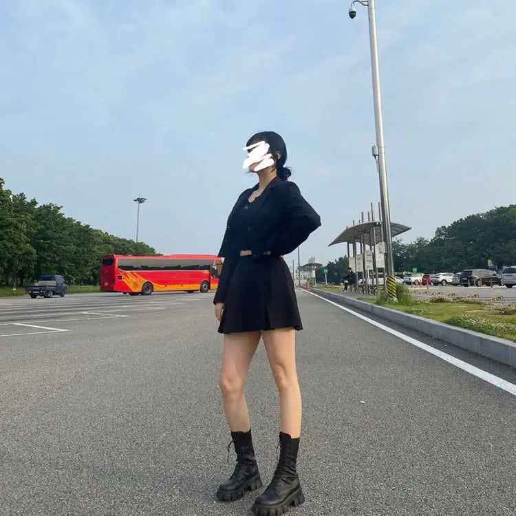New Mid Calf Boots Women Autumn Winter Fashion Lace-up Ladies Chelsea Zipper Botas Mujer Boots Sports Platform Heel Ladies Shoes