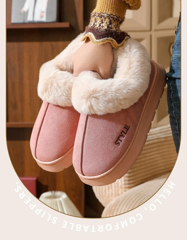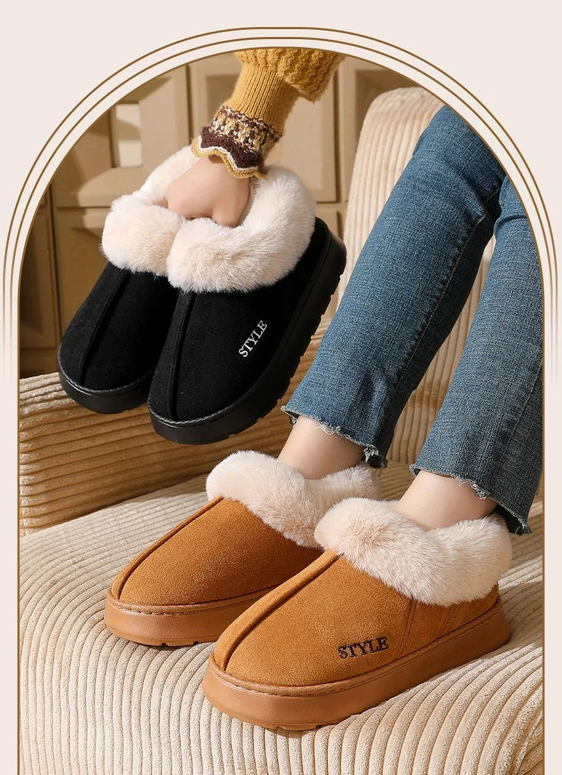 New Platform Snow Boots for Women's Home Thick Warm Wool Shoes Women's Outdoor Anti-Slip Fur Velvet Ankle Short Boots Shoes