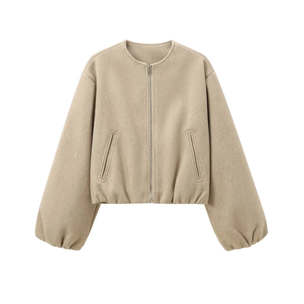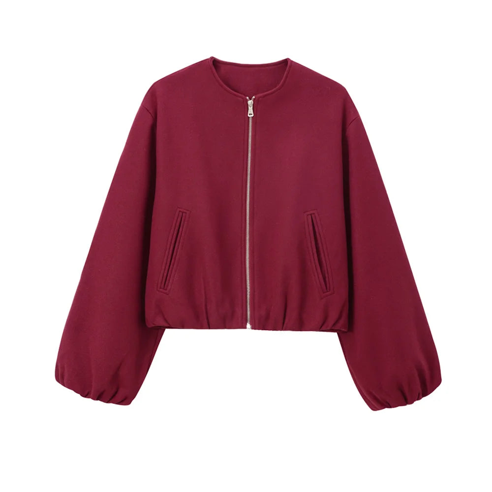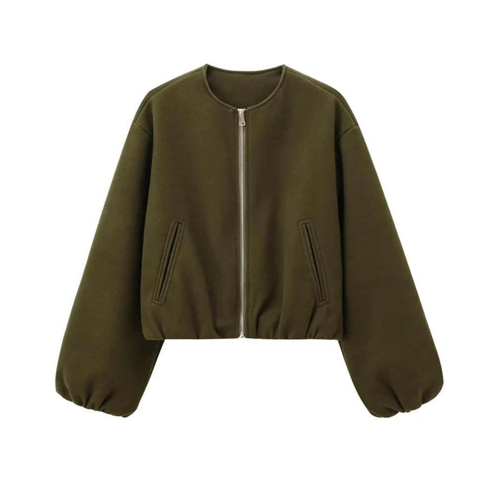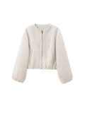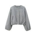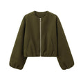 Oversized Soft Bomber Jacket for Women, Long Sleeve Coat, Front Zipper, Female Outerwear, Chic Tops, Fashion