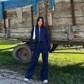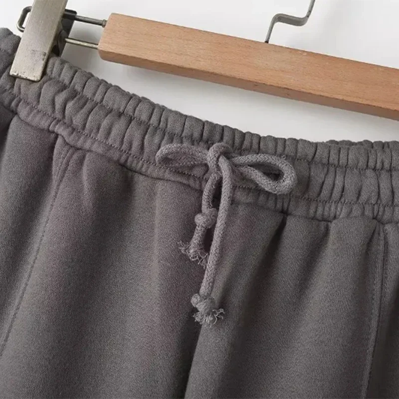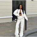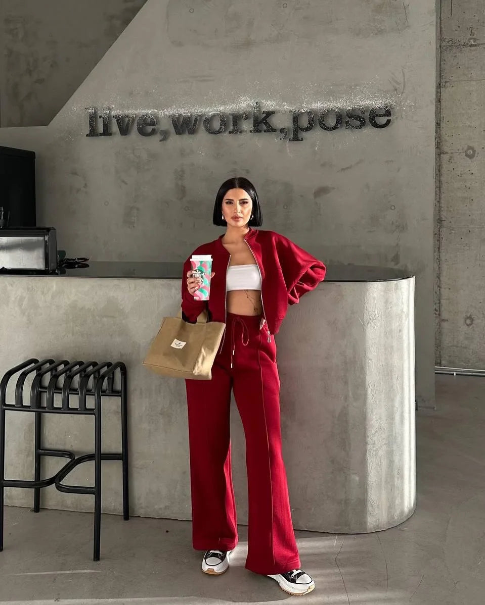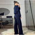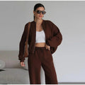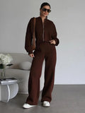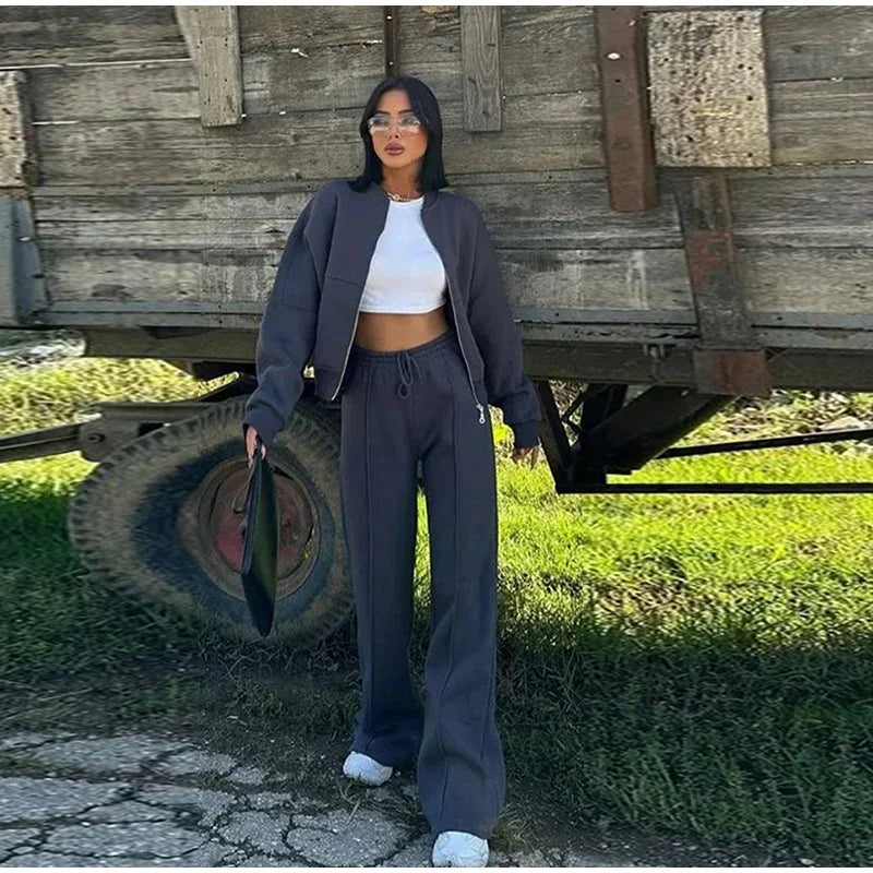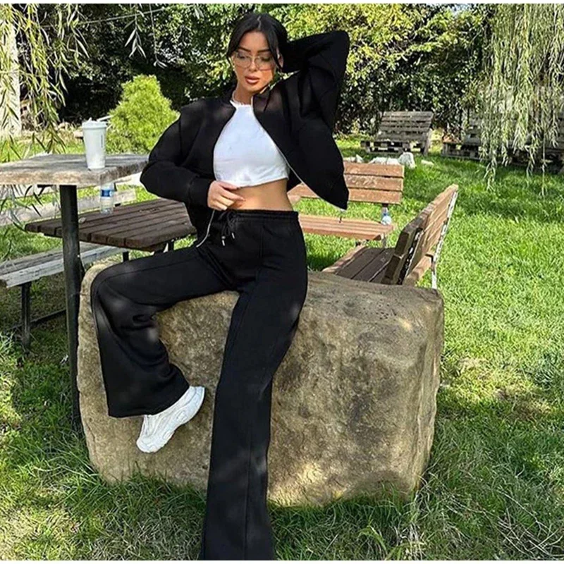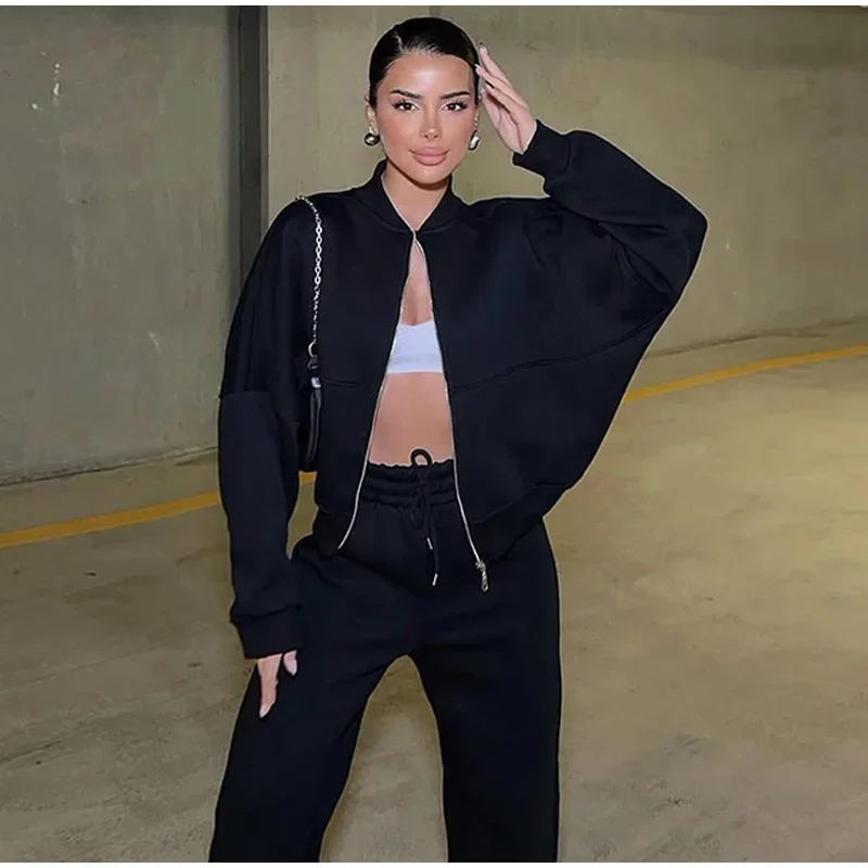 Women Casual Sweatshirt Pants Set Spring Autumn Zippers O-neck Jacket Loose Lace-up Elastic Waist Trousers Suits Solid Outwear